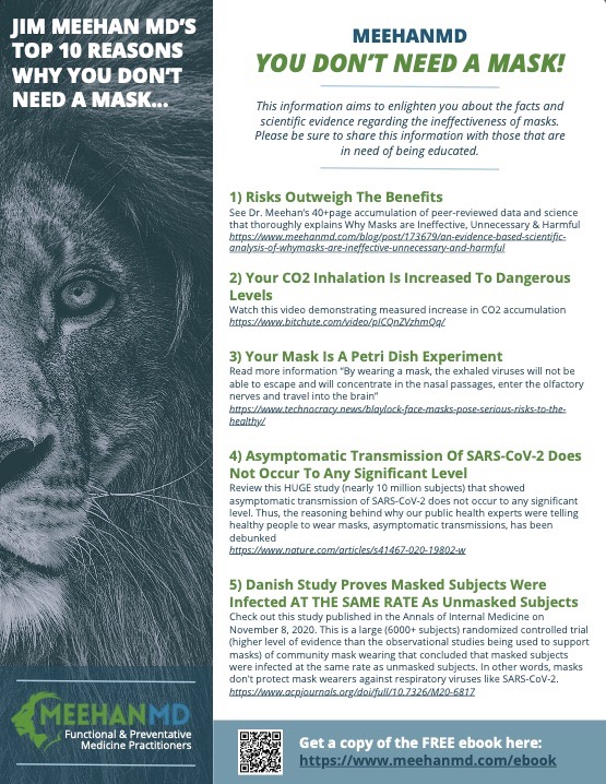 Download Dr. Meehan's Free eBook now! An Evidence-Based Analysis of Why Masks Are Ineffective, Unnecessary and Harmful